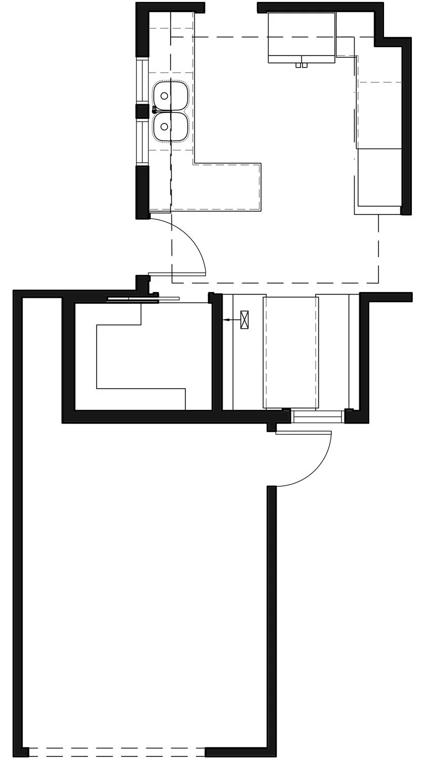 After a few passes at space planning and many discussions with the contractor from a plumbing standpoint, we finalized the new powder room location.